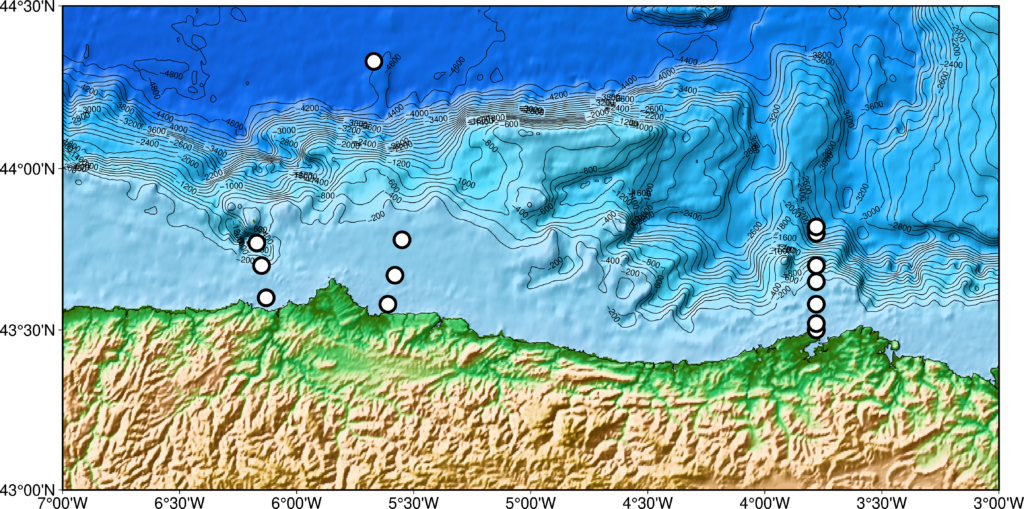 - Combinar la monitorización mensual del medio pelágico desde la plataforma hasta la región oceánica del golfo de Vizcaya con el muestreo de toda la columna de agua en los 4600 m de profundidad de la llanura abisal del golfo de Vizcaya.